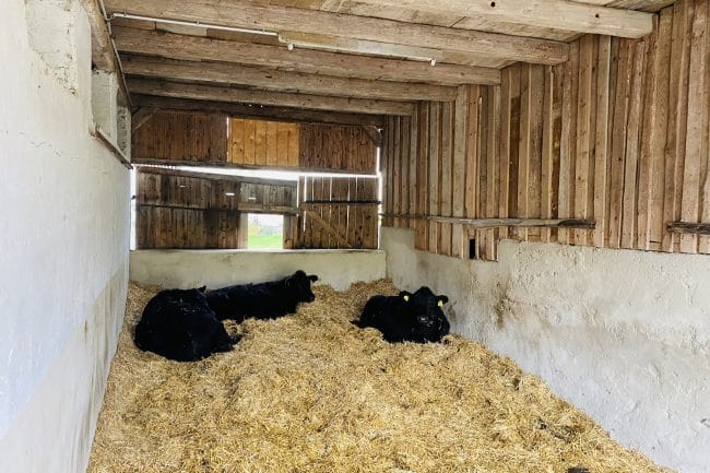 Dort herrscht für sie leider einige Wochen Ausgangssperre! Aber nicht, weil da Basti das gestern gesagt hat, sondern um den Mindestabstand zum Euter der Mutterkühe sicherzustellen😉!