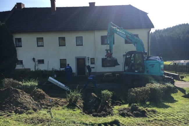 Bereits vor einigen Wochen hat die Firma Ebner Strom (die den Frohnlehnerhof mit 100% Ökostrom beliefern) eine Erdkabelleitung zum Hof gegraben! Seit dieser Woche ist nun auch alles angeschlossen, und der Dachständer und die Strommasten auf unseren Wiesen sind bereits weg!