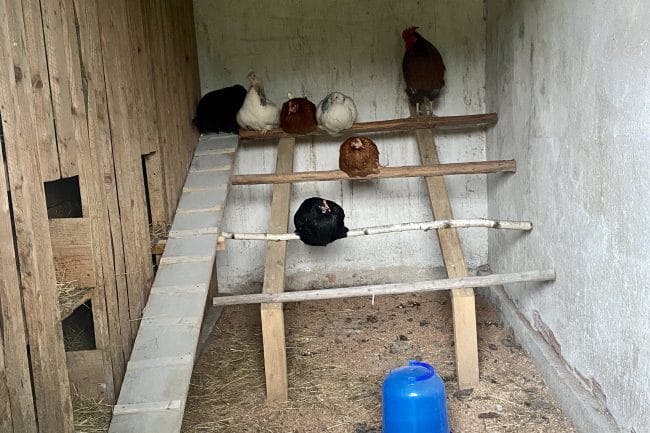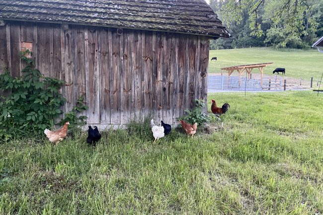 Auch Jürgen’s Goli hat von unserer Hühnersuche mitbekommen und gleich beschlossen, uns welche vorbeizubringen. Gestern haben die 6 Damen ihr neues Zuhause bezogen.